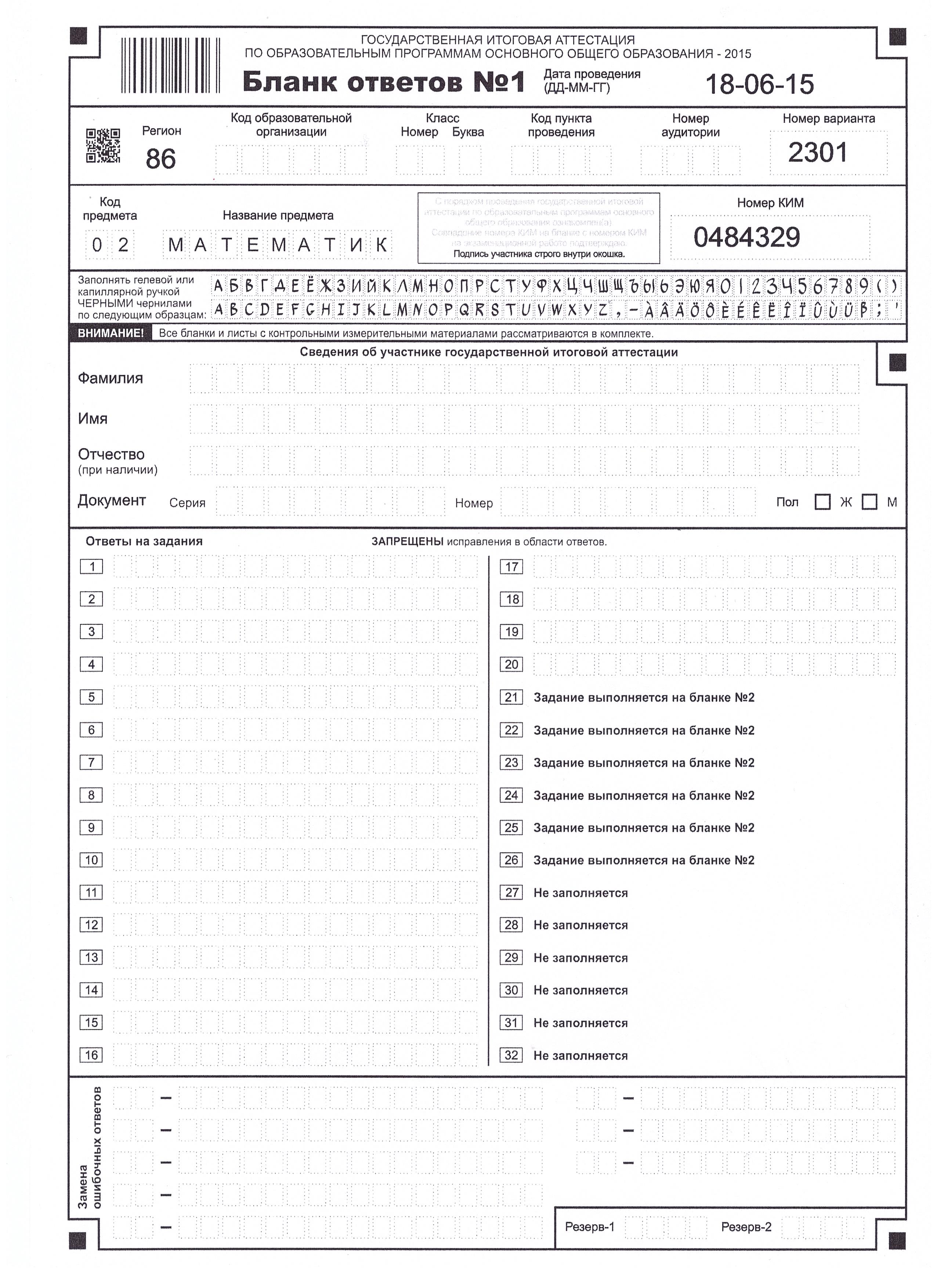 - Бланки Регистрации и Ответов на Экзамен