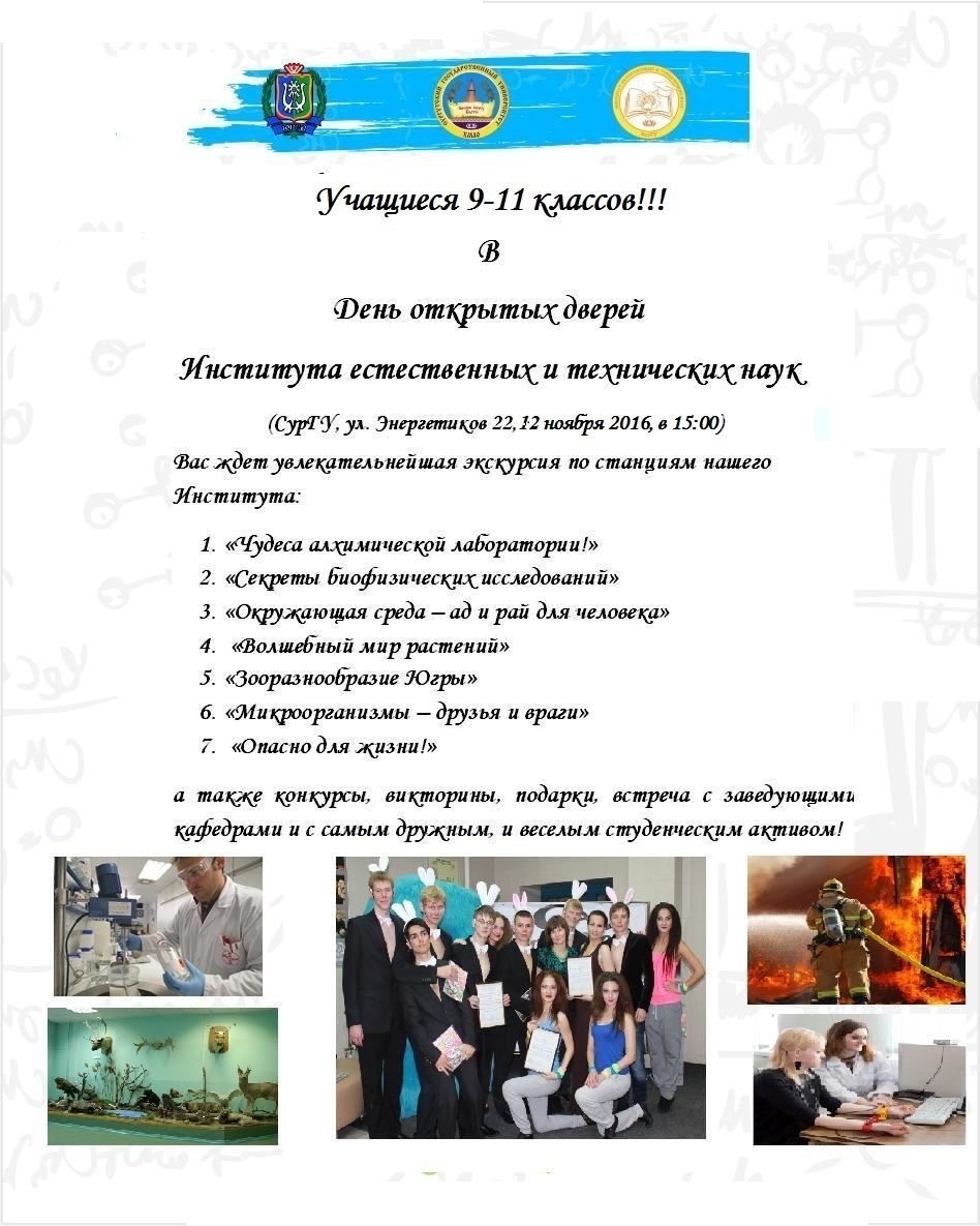 *'''[[Медиа:афиша2016.jpg|День открытых дверей СурГУ (Институт естественных и технических наук)]]''''