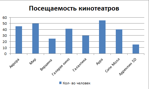 На основе того, что много человек ходят в кино, мы решили узнать, какие кинотеатры они чаще всего посещают. (Второй опыт был проведен на параллели всех 7 и 6 классов)