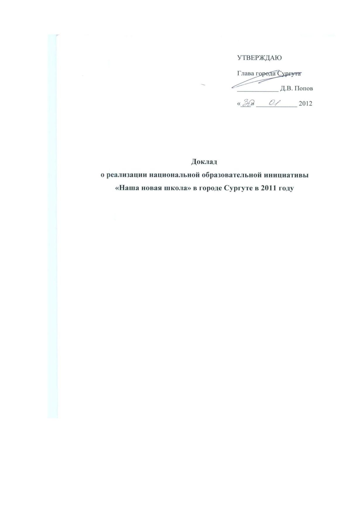 ДОКЛАД О РЕАЛИЗАЦИИ НАЦИОНАЛЬНОЙ ОБРАЗОВАТЕЛЬНОЙ ИНИЦИАТИВЫ «НАША НОВАЯ ШКОЛА» В ГОРОДЕ СУРГУТЕ В 2011 ГОДУ